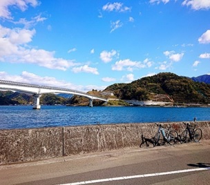 宇和島の街を抜け宇和島市九島に架かる九島大橋。
